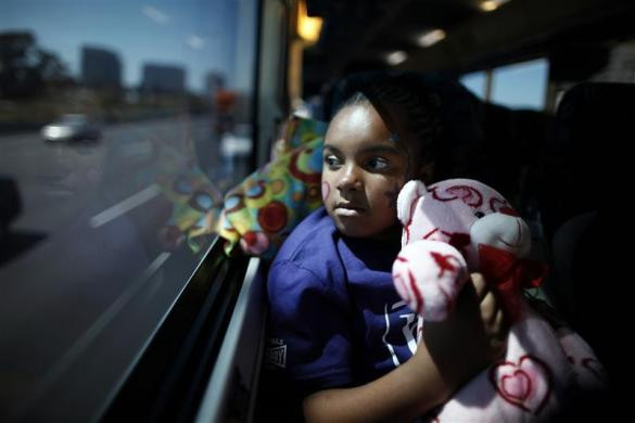 | Những đứa trẻ trở về trên xe buýt sau cuộc gặp đầy xúc động với cha mình. |