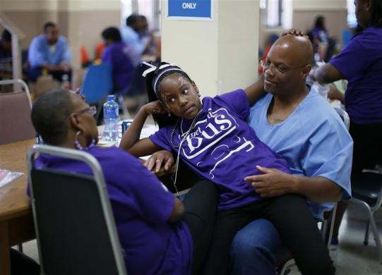 | Donte và con gái Cieara và Nicole cùng đọc sách cho nhau nghe. |
