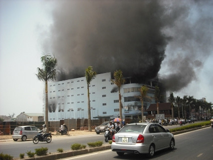 Có mặt tai hiện trường, PV Giáo duc Việt Nam ghi nhận: ngọn lửa bốc cháy ngùn ngụt phát ra từ tầng hai của siêu thị. Sau đó nhanh chóng lan ra 5 tầng còn lại của siêu thị.