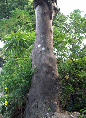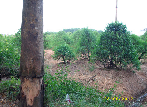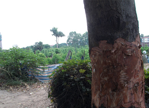 | Những gốc cây bị đẽo vỏ không thương tiếc. |