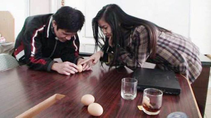 | Mời bạn bè đến chứng kiến cảnh dựng trứng trên đầu đũa. |