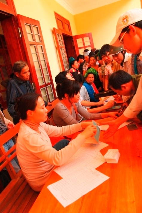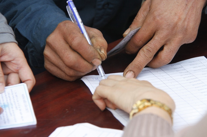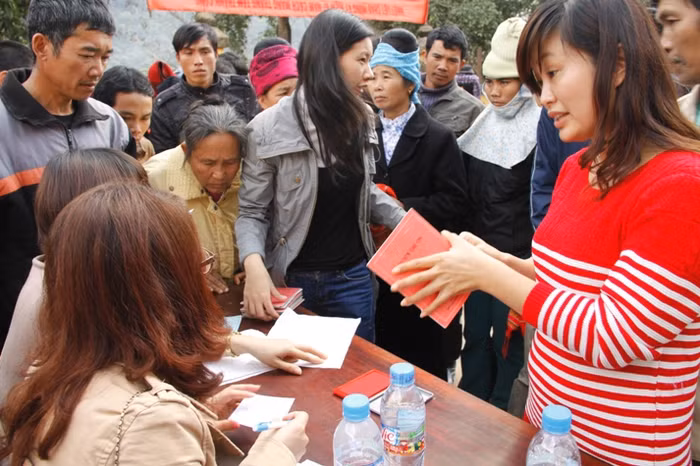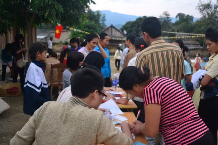 Đoàn từ thiện kiểm tra sổ hộ khẩu và Chứng minh nhân dân xem có khớp với danh sách hộ nghèo không?