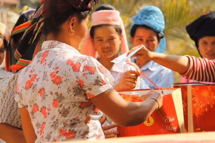 | Người dân Tây Bắc vui mừng đến nhận những món quà tết! |