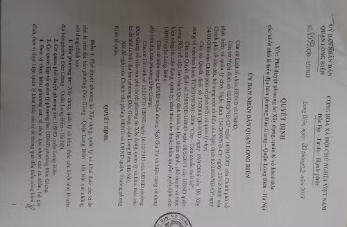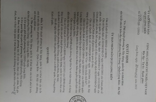 Tất cả các tờ trình của UBND phường Đức Giang đều do ông Ngô Mạnh Điền - Chủ tịch UBND phường Đức Giang khi đó ký, các quyết định phê duyệt của UBND quận Long Biên là do ông Đỗ Huy Chiến - Phó Chủ tịch UBND quận Long Biên ký.