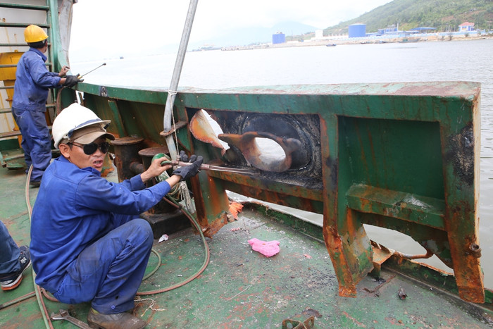 | Nhìn đâu cũng thấy "vết thương" trên thân tàu... |