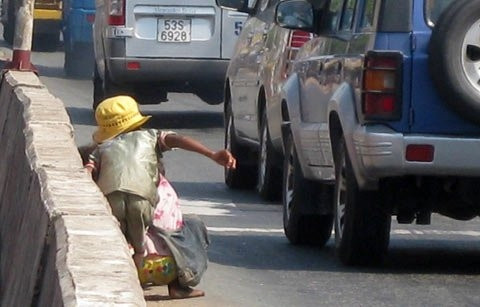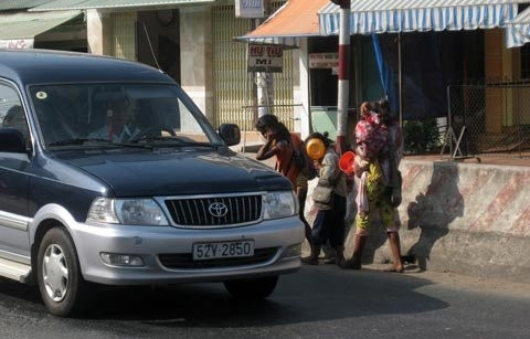 Đối với người dân sống tại thị trấn Cai Lậy (Tiền Giang), hình ảnh mỗi ngày có hơn 10 đứa trẻ chặn đầu ô tô để xin tiền đã quá quen thuộc.