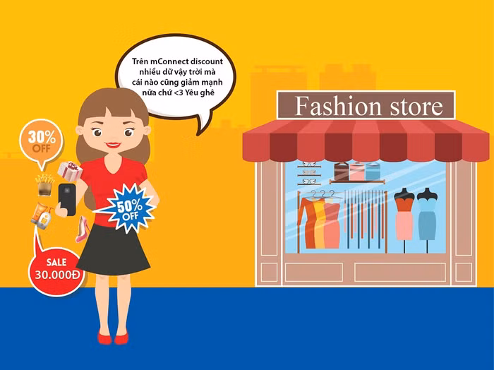 Chắc hẳn giới trẻ yêu thích “giảm giá” không thể bỏ qua “đặc quyền” này khi chỉ cần cài đặt ứng dụng miễn phí mConnect thì hàng trăm địa điểm shopping, ăn chơi, làm đẹp… có thể được giảm giá đến 50%.