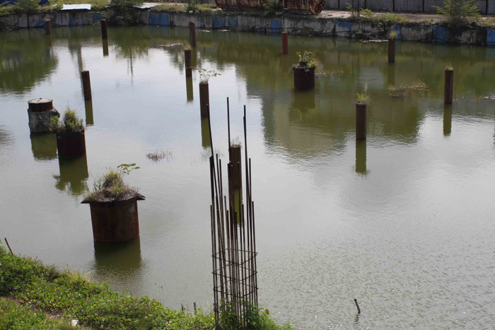 Hiện toàn bộ dự án như một cái…ao. Nước, cỏ, rác…bủa vây dự án