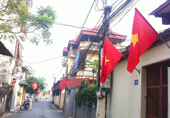 | Những lá cờ đỏ rực tung bay khắp trời Hà Nội. |