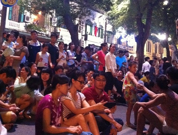 | Do lượng người đổ về quanh khu vực Hồ Gươm quá lớn nên tới 22h30 các tuyến phố trung tâm vẫn còn "kẹt cứng". |