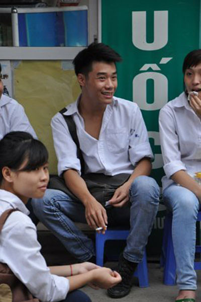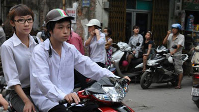 Đi xe máy không đội mũ bảo hiểm hay phì phèo thuốc lá là những hình ảnh chưa đẹp của học sinh Hà Nội trong ngày đầu tiên thi tốt nghiệp THPT. Một số hình ảnh được PV ghi lại trong sáng và chiều 2/6 tại hai hội đồng thi: Trường THPT Hoàng Cầu và Trường THCS Huy Văn thuộc quận Đống Đa, Hà Nội.