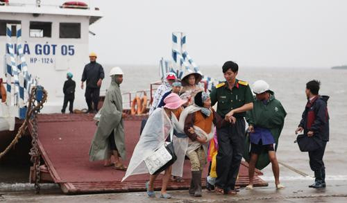 | Người già, phụ nữ, trẻ em sơ tán bằng phà từ đảo Cát Hải sang đảo Cát Bà (Hải Phòng) tránh bão - Ảnh: Tuổi trẻ |