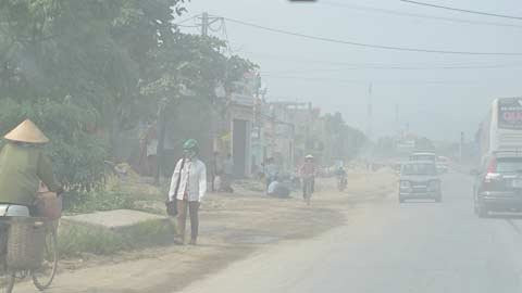 | Thi công ngổn ngang, nhà thầu không chịu tưới nước khiến bụi bay mù mịt. |