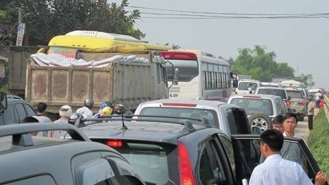 | Thi công lấm chiếm lòng đường nên ùn tắc cũng xảy ra thường xuyên. |