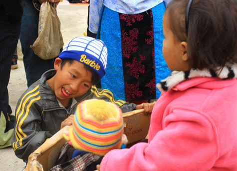 | Giá rét vẫn không ngăn cản được trẻ đến buổi chợ phiên có thể kiếm thêm ít tiền |