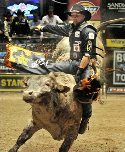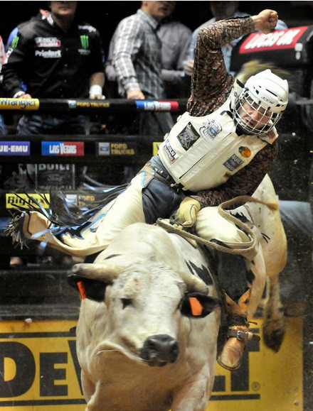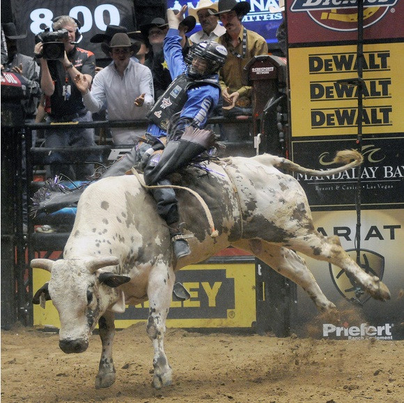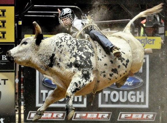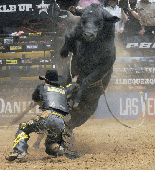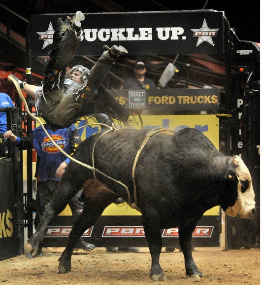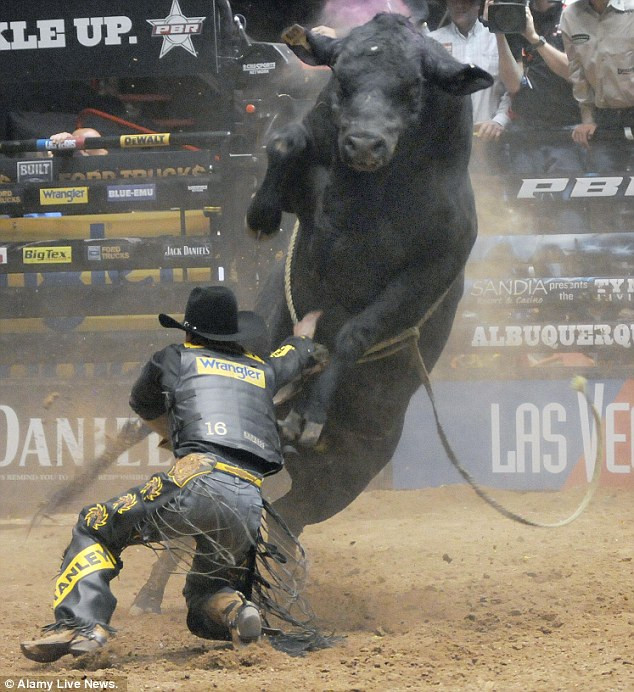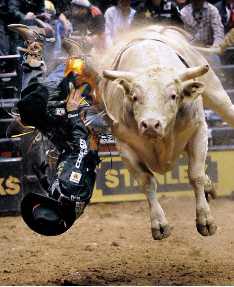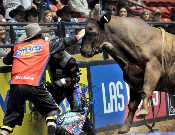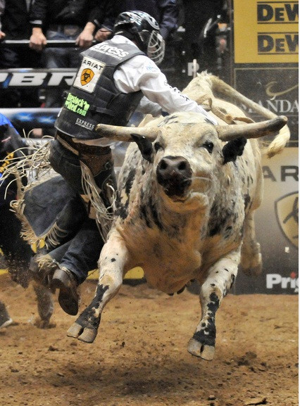 | Con bò Slim nặng 750 kg là một con trong những con vật hung hăng nhất. Các đấu sĩ chỉ có thể ngồi vững trên lưng nó trong thời gian trung bình là 3,65 giây |