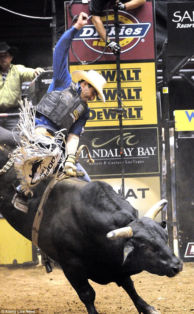 | Emilio Resende, 24 tuổi, ở Albuquerque, New Mexico, bị ngã trong một trận đấu tại giải Ty Murray Invitational hôm 25/3. Sống sót, Resende đã giành được vị trí thứ 19 trong số 35 đấu sĩ tham gia giải đấu năm nay với 1 điểm. |