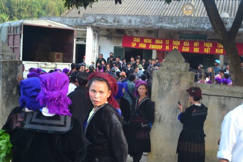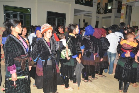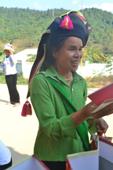 Hầu hết bà con đều đến trung tâm xã từ 4h,5h chiều vì nghe tin có đoàn Hà Nội lên trao quà ăn Tết. Nhiều bà con không về, kiên trì đứng đợi và chưa ăn tối. Chị Lò Thị Chiến ở cách xa trung tâm 12 cây số vừa bắt tay tôi, vừa cười cảm ơn nói: “Cũng vui hết. Sắp đến Tết, các cô chú quan tâm thì vui mừng hết.Không ai về vì biết đoàn sẽ đến nên đều ở lại chờ. Vui, vui lắm!”.