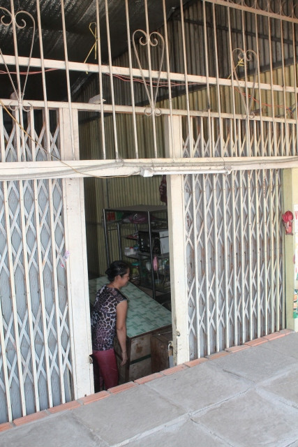 | Mỗi khi ra vào nhà, cô Trần Thị Thanh Hằng phải cúi người xuống để đi |