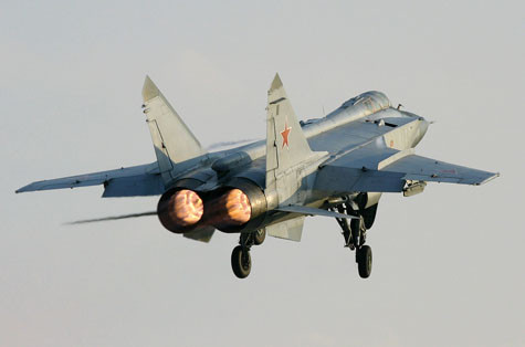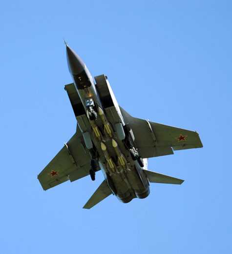 | Tiêm kích MiG-31 trình diễn tại Lễ kỷ niệm 100 năm Không quân Nga. |