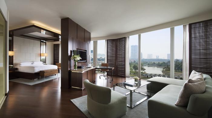 | Khung cảnh phòng Presidential Suite tại khách sạn JW Marriott Hanoi – Phòng được chia thành nhiều phòng nhỏ bao gồm phòng khách, phòng ngủ, phòng làm việc. |