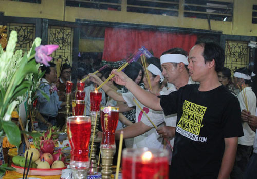 | Nhiều người còn chuẩn bị cả hoa để đến viếng |