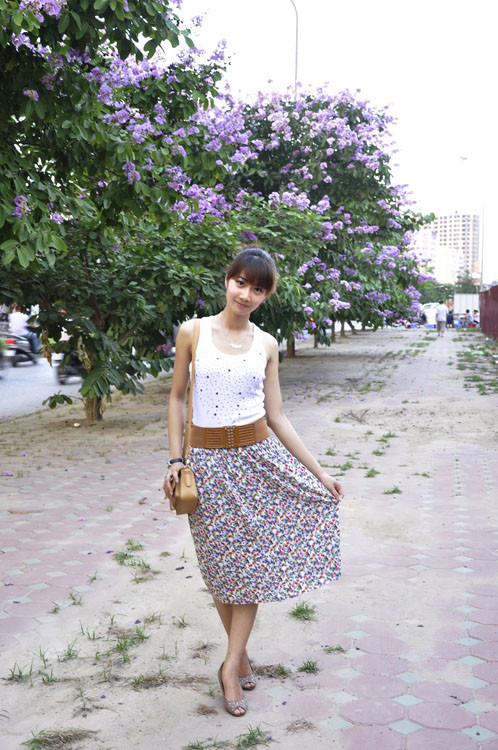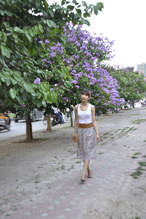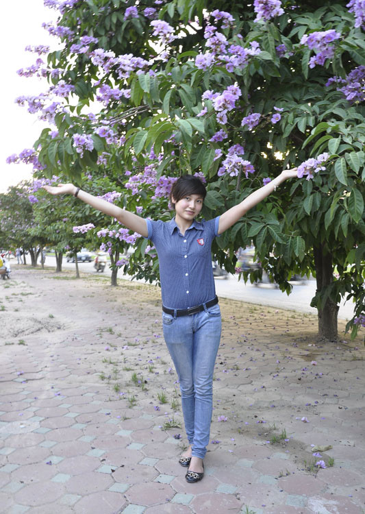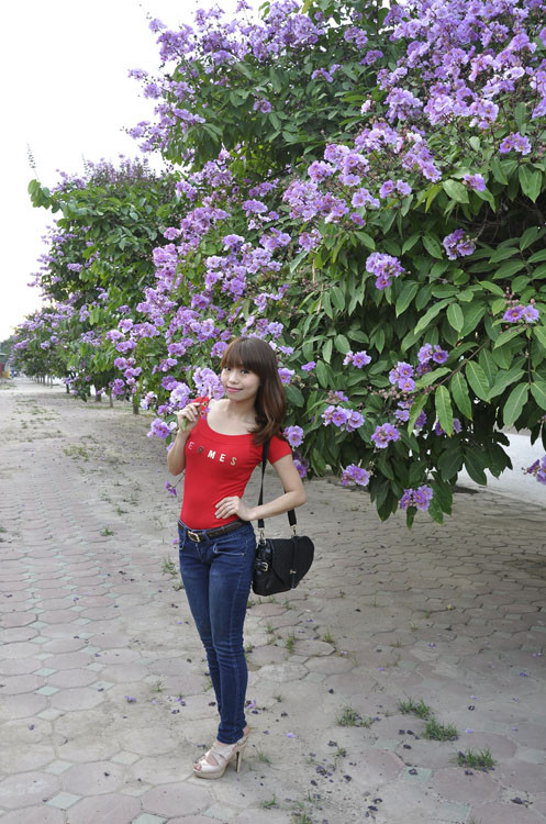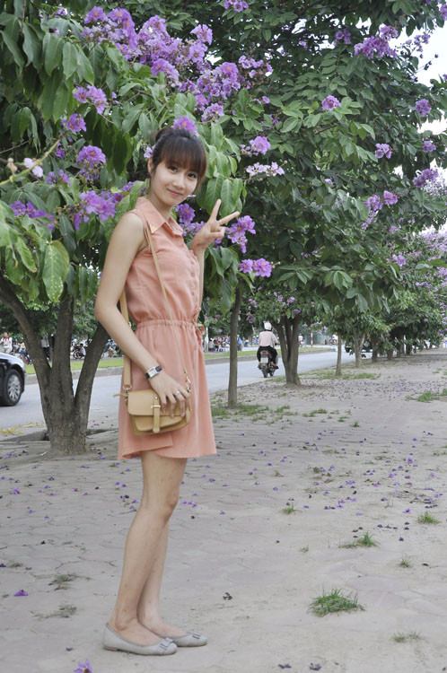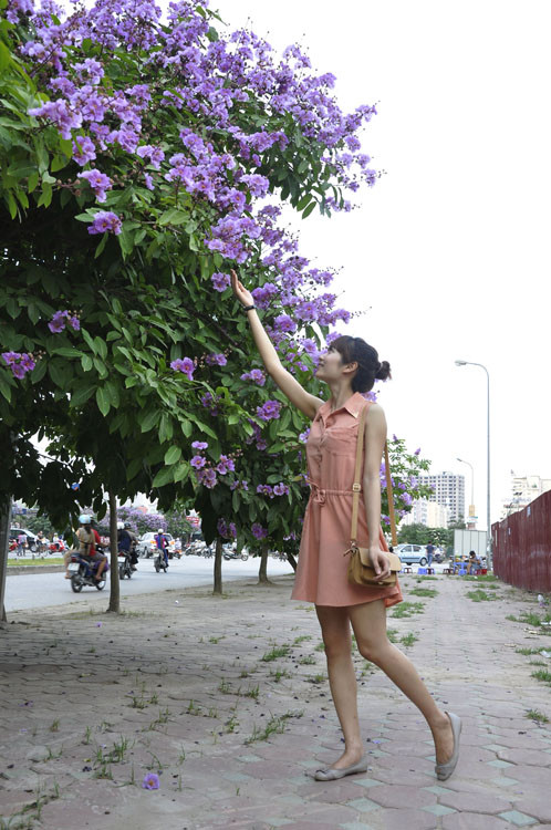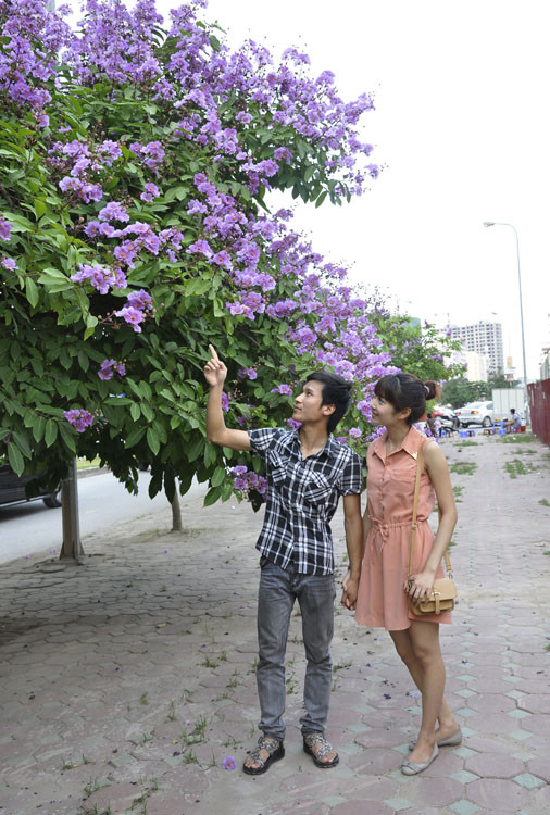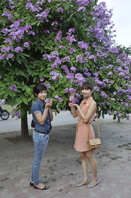 (GDVN) - Những ngày tháng 5, màu tím hồng thánh thiện và tinh khiết của hoa bằng lăng bao trùm khắp phố phường thủ đô. Trên nhiều tuyến phố, hoa bằng lăng nở kín hai bên đường tạo nên một không gian thơ mộng. Nhiều bạn trẻ tranh thủ chụp ảnh lưu giữ khoảng khắc này.