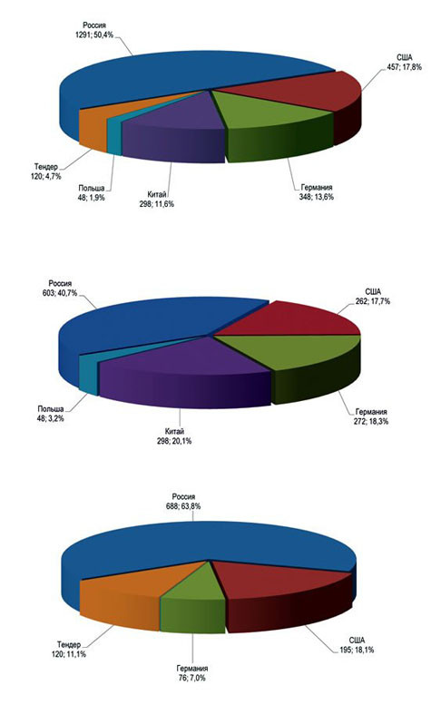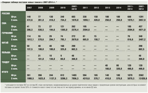 Xét riêng năm nay (2011), Nga đã xuất khẩu 338 chiếc xe tăng chiến đấu chủ lực trị giá 1.059 triệu đôla, vượt xa đối thủ xếp thứ 2 là Mỹ với 195 chiếc. Đức chỉ xuất khẩu được 61 chiếc và chấp nhận ở vị trí thứ 3.