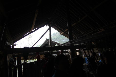 | Căn nhà của gia đình chị Sùng Thị Xúa chỉ che được nắng chứ không chắn được gió. (Ảnh Trần Lân) |