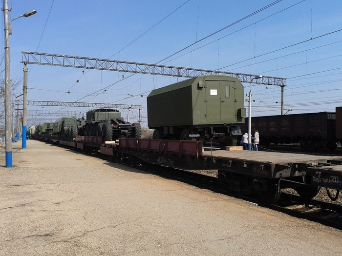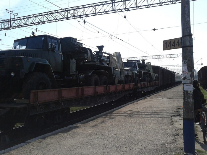 Tại khu vực làng Hvardiiske ở Simferopol, Crimea, Ukraine người ta đã chứng kiến cảnh vận chuyển các tổ hợp pháo, tên lửa hỗn hợp Pantsir-S1 bằng tàu hoả.