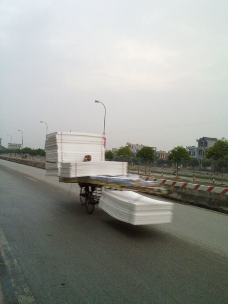 | Chở hàng cồng kềnh trên đường phố. |