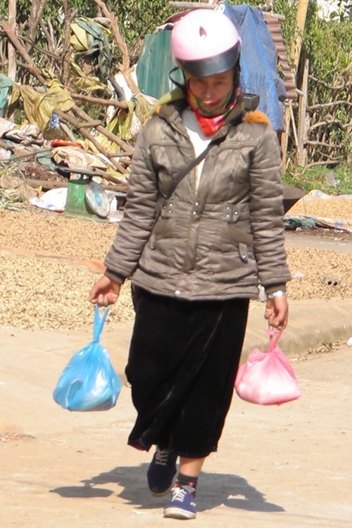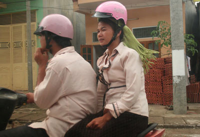 | Kiểu đội mũ bảo hiểm này có lẽ chỉ có ở các các cô gái dân tộc Thái ở nước ta |