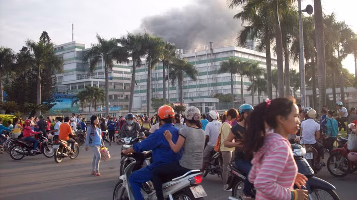 Anh Lưu Văn Phước, công nhân nhà máy cho biết: “Khi ngọn lửa lan qua khu A5, hàng trăm công nhân bắt đầu bỏ chạy hết vì khói quá nhiều mọi người không chịu được”.