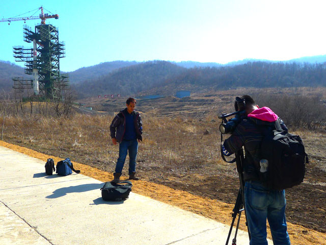 | Các phóng viên đến thăm bãi thử Tongchang-ri. |