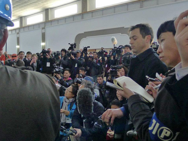 | Phóng viên quốc tế tập trung tại khách sạn thủ đô Bình Nhưỡng. |