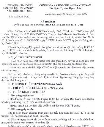 Theo xác minh của phóng viên Báo điện tử Giáo dục Việt Nam, ngày 21/5/2014, Ban chỉ đạo tuyển sinh năm học 2014-2015 (UBND quận Hà Đông) ban hành Kế hoạch 120/KH-BCĐ ghi rõ chỉ tiêu số lượng tuyển sinh vào lớp 6 của Trường THCS Lê Lợi năm học 2014 – 2015 là: 4 lớp – 160 học sinh. Kế hoạch này do bà Phạm Thị Hòa, Phó chủ tịch UBND quận ký.