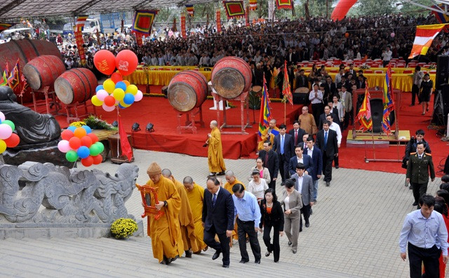 Như thông lệ, năm nay, Phó Thủ tướng Nguyễn Xuân Phúc cùng các vị đại biểu nhà nước, tỉnh Ninh Bình và đông đảo tăng ni, phật tử, khách thập phương ở trong và ngoài nước đã về dự khai hội chùa Bái Đính tỉnh Ninh Bình.