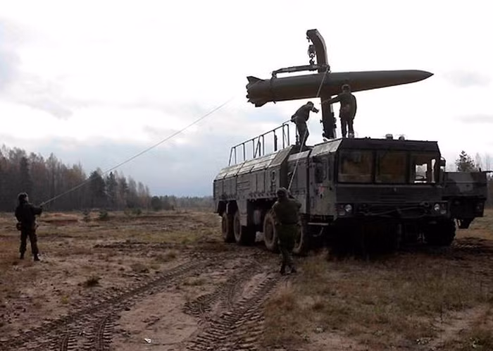 | Tên lửa chiến thuật Iskander M Nga chuẩn bị bắn |