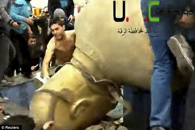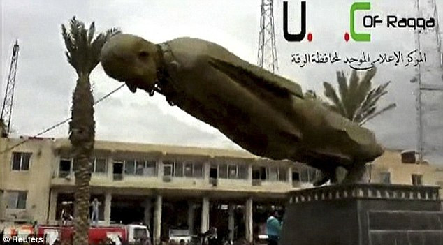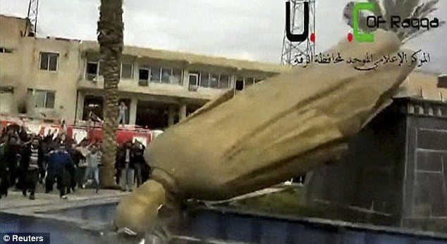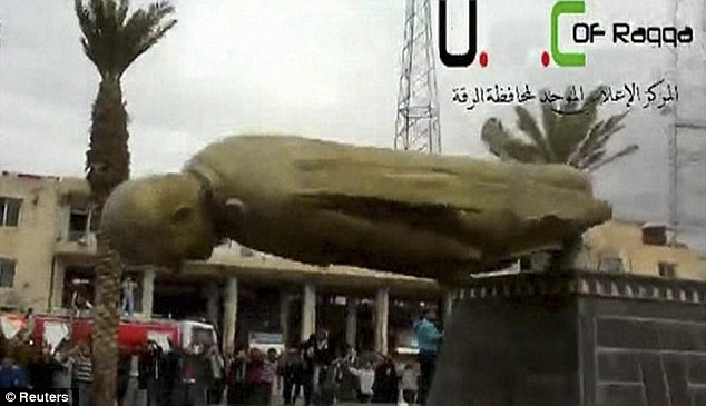 Sự kiện kéo đổ bức tượng đồng chân dung cha Tổng thống Assad ở quảng trường trung thâm thành phố Raqqa gợi nhớ tới cảnh người dân tức giận kéo đổ tượng Saddam Hussein tại Iraq năm 2003 khi chính quyền này sụp đổ.