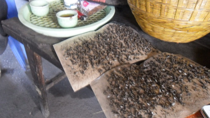 | Những miếng keo bẫy ruồi đen kịt như bánh đa |