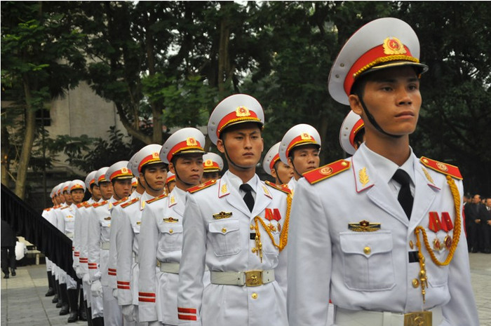 Từ sáng sớm, hàng nghìn người lặng lẽ hướng về Nhà Tang lễ Quốc gia, số 5 Trần Thánh Tông với niềm tiếc thương vô hạn. Bên trong Nhà Tang lễ, 60 sĩ quan cấp tướng túc trực bên linh cữu Đại tướng. Đây là nghi thức trang trọng nhất của quân đội.
