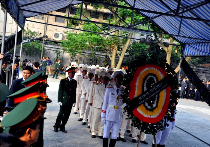 Sáng nay (12/10/2013), tại Nhà Tang lễ quốc gia - số 5 Trần Thánh Tông, Hà Nội, Ban Chấp hành Trung ương Đảng, Quốc hội, Chủ tịch nước, Chính phủ, Ủy ban Trung ương Mặt trận Tổ quốc Việt Nam và Quân ủy Trung ương đã tổ chức trọng thể Lễ viếng theo nghi thức Quốc tang đồng chí Đại tướng Võ Nguyên Giáp, nguyên Ủy viên Bộ Chính trị, nguyên Bí thư Quân ủy Trung ương, nguyên Phó Thủ tướng Thường trực Chính phủ; nguyên Bộ trưởng Bộ Quốc phòng, Tổng Tư lệnh Quân đội nhân dân Việt Nam; Đại biểu Quốc hội từ Khóa I đến Khóa VII.
