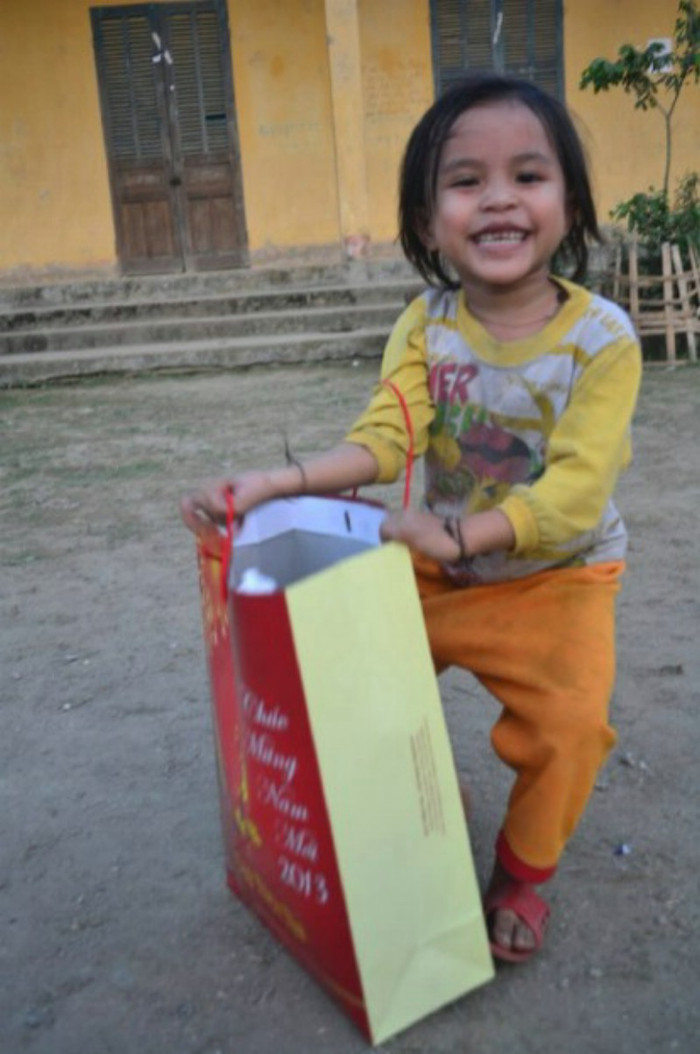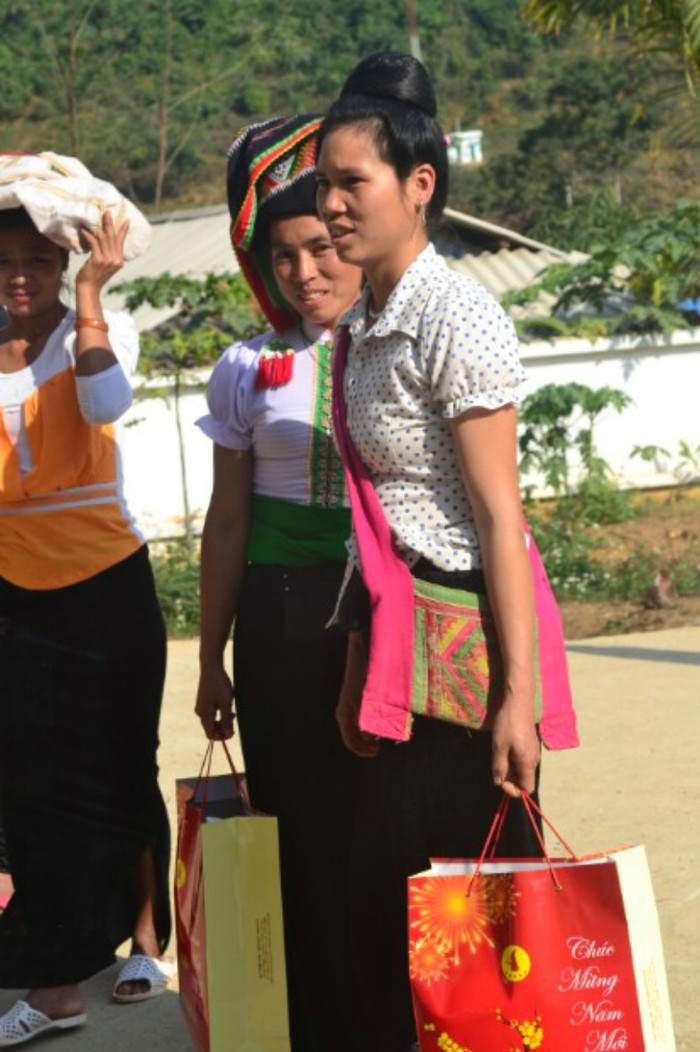 | Người dân xã Mùn Chung (huyện Tuần Giáo) rạng rỡ, e thẹn khi nhận được nhiều quà Tết như vậy. |