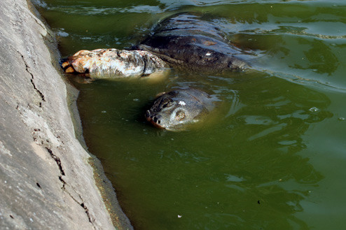 | Qua hình ảnh này, các nhà khoa học lo ngại bệnh của cụ Rùa sẽ tái phát, sức khỏe của cụ sẽ lại bị đe dọa. Ảnh: Vũ Long. |