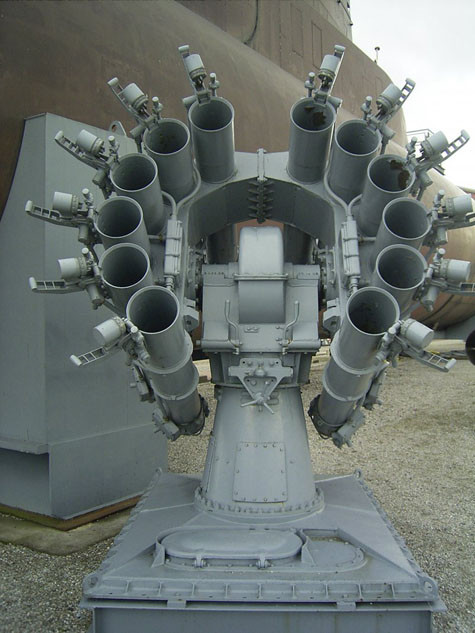 Lúc này, các ống phóng của RBU-6000 tạo với mặt boong tàu một góc 90 độ. Đây là góc bắn tối thiểu của tổ hợp bom-rocket này.