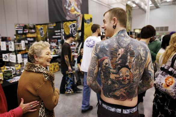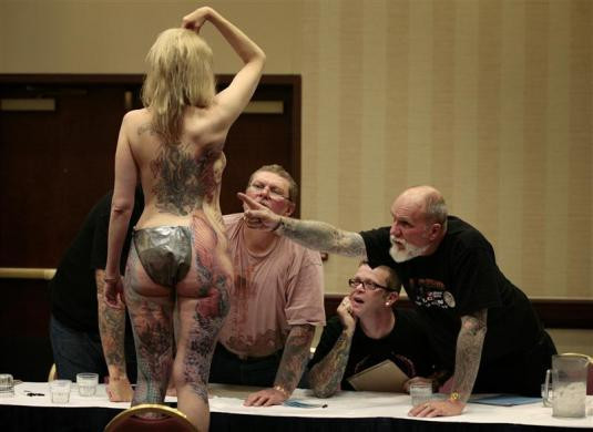 | Tại Cincinnati, tiểu bang Ohio, Mỹ, Hiệp hội Hình xăm quốc gia đã tổ chức một cuộc thi đánh giá các hình xăm trên cơ thể và thu hút đông đảo người dân tham gia từ đàn ông cho đến phụ nữ. |