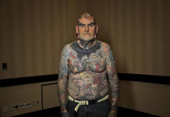 | Ông Yoshi đến từ Nhật Bản từng giành được nhiều giải thưởng trên thế giới về hình xăm toàn thân. Ở Cincinnati lần này, ông đã giành được vị trí thứ ba. |
