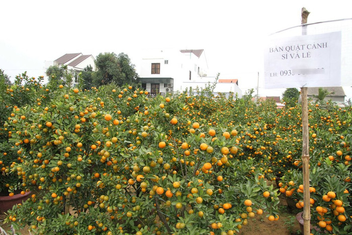 | Rải rác một số chủ nhà vườn trồng quất cảnh treo biển bán quất cảnh sĩ và lẻ. Tuy nhiên, cũng chỉ vài chục chậu nhỏ, hầu như các chậu có cây to, thế đẹp, trái chín xum xuê đều đã được các thương lái đặt mua hết. |