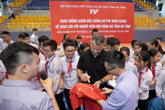 Lần thứ 6 đến Việt Nam trong vai trò Giám đốc Bóng đá của Trung tâm Đào tạo bóng đá trẻ PVF, cựu danh thủ Ryan Giggs đã đến Nghệ An, Hà Tĩnh để chia sẻ với huấn luyện viên địa phương về kinh nghiệm đào tạo bóng đá học đường cũng như giao lưu với các em nhỏ về khát khao và nỗ lực vươn tới bóng đá đỉnh cao.