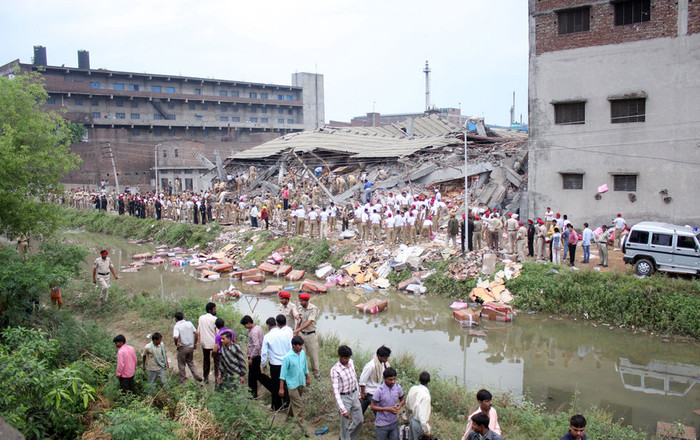 (GDVN) - Tân Hoa Xã ngày 17/4 đưa tin, một tòa nhà xưởng sản xuất thảm gần thành phố Jalandhar, Ấn Độ đổ sập tối 15/4, có ít nhất 250 người bị chôn vùi dưới đống đổ nát, công tác cứu hộ đang được nhà chức trách triển khai khẩn trương. Một người dân trong vùng cho biết, trước khi tòa nhà đổ sập có 1 tiếng nổ lớn phát ra, trong tòa nhà lúc đó có khoảng 250 đến 300 người. Ảnh chụp ngày 16/4/2012.